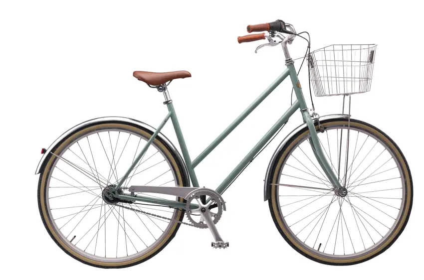 Det enkle, slanke stel, de tynde dæk med hvid kant samt sadel og greb i læderlook giver cyklen et let og elegant udtryk, der vil pynte på cykelstien. Den diskrete trådkurv er prikken over i'et.